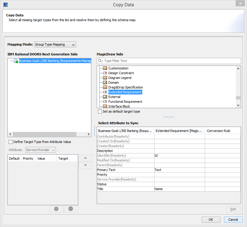 Copying OSLC query results to a modeling tool as SysML Requirements