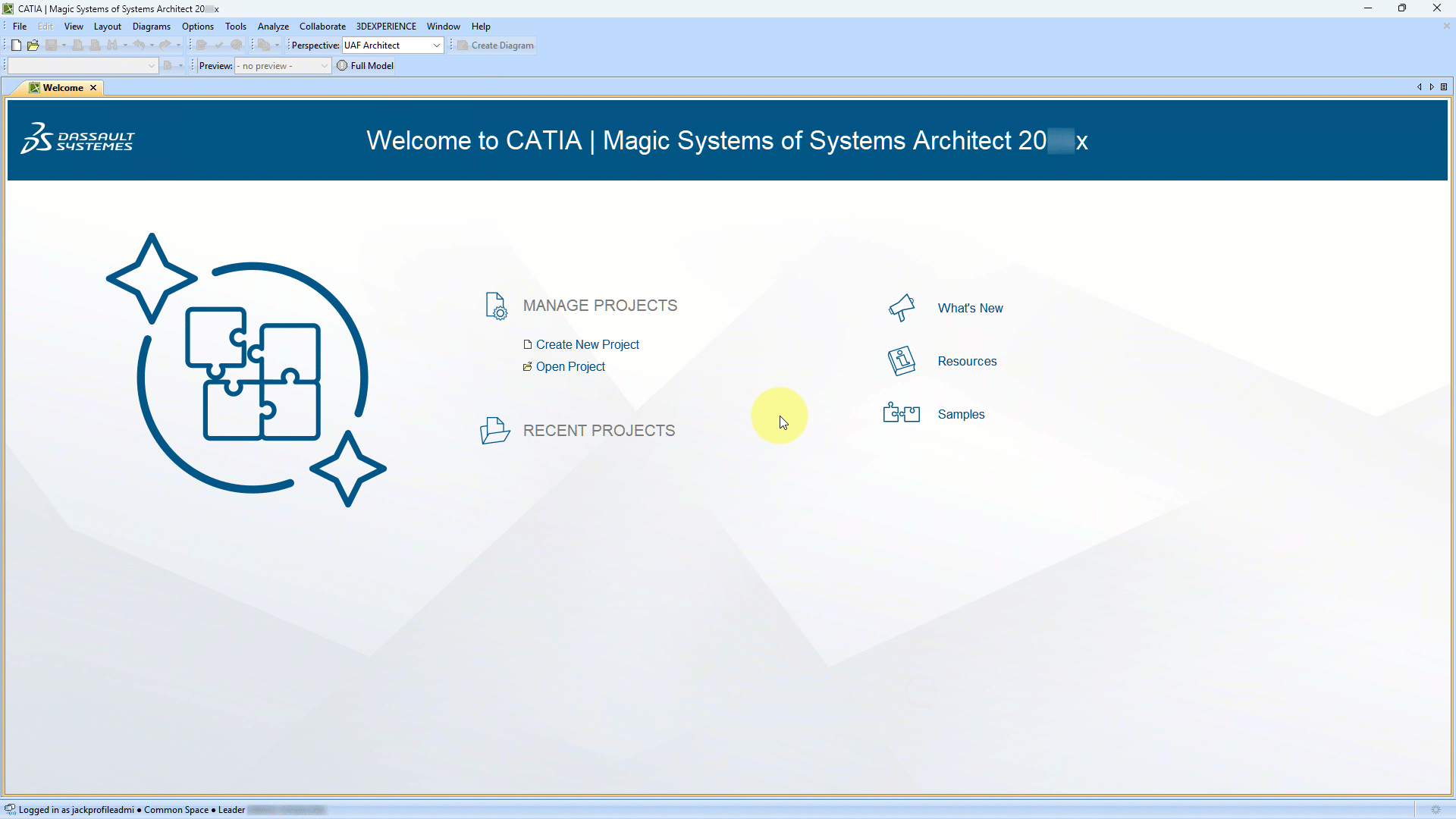 - Navigate to the 3DEXPERIENCE menu in the CATIA Magic application.