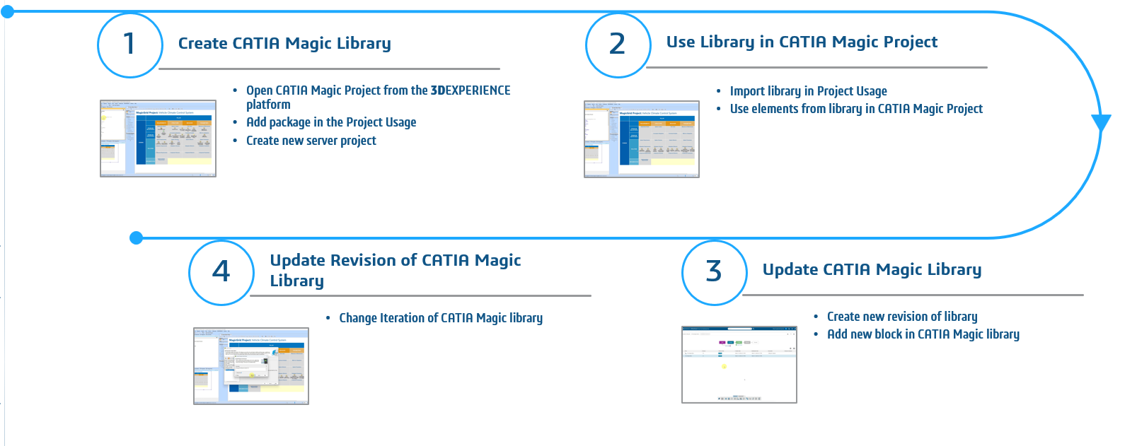 This technical practice highlights the use of Project Usages with the 3DEXPERIENCE platform. It will help users create a new library by using the Project Usages option to split the CATIA MAGIC project. The library can then be used in multiple CATIA Magic projects. This technical practice also highlights the management of the library.