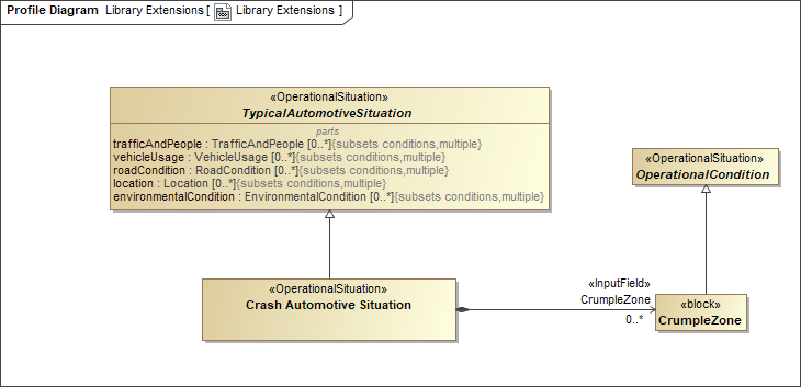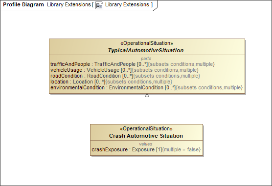 - In the ISO 26262 Library, find the TypicalAutomotiveSituation element and drag it to the Profile diagram.