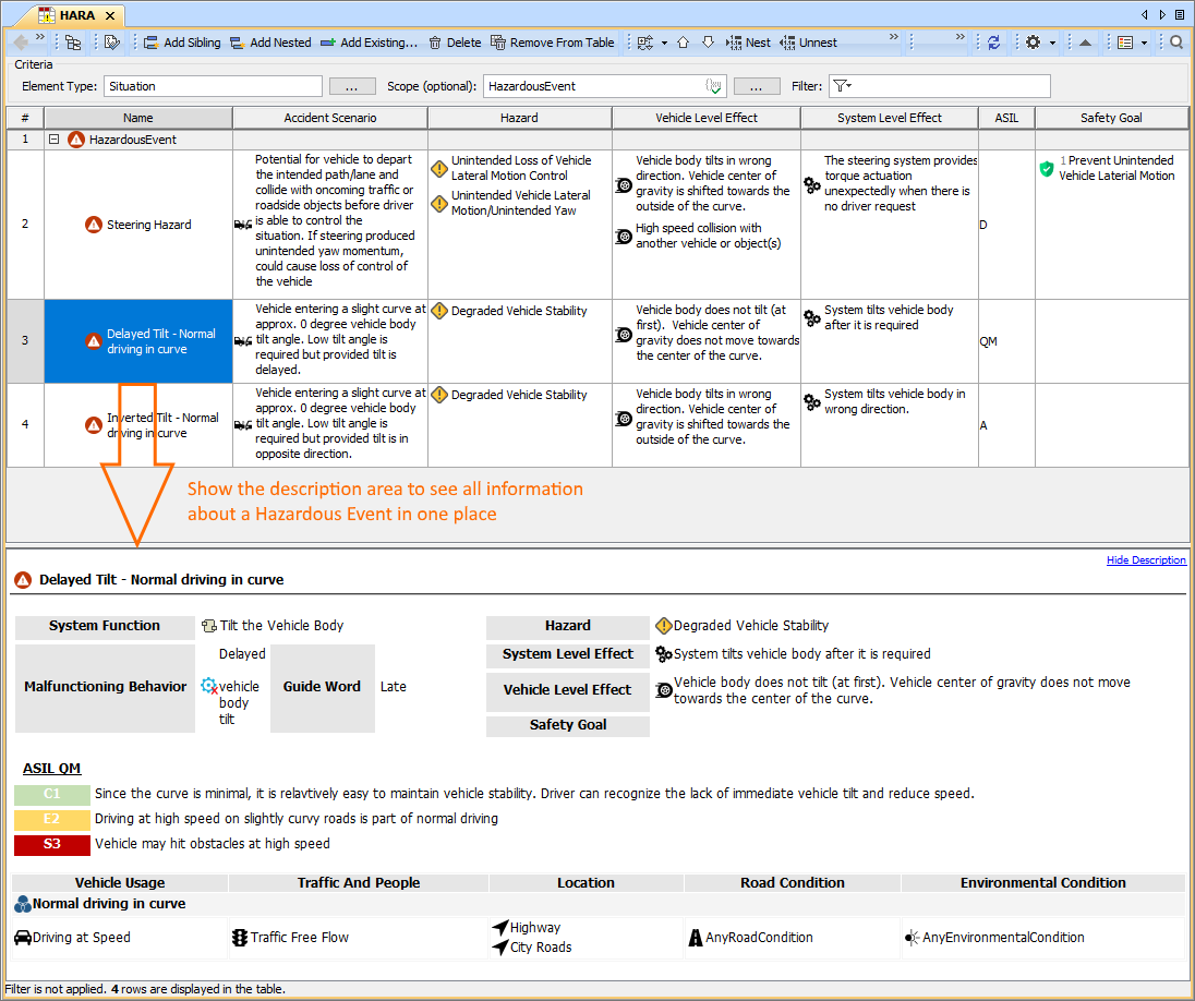 There are two ways to create a Hazardous Event: you can do it right in a HARA Table or in the Containment tree.