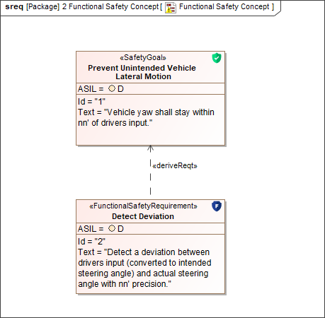 A Safety Requirement Diagram displays safety goals, safety requirements and their relations. The main purpose of this diagram is to create requirements that cover the safety goals defined in HARA. In this chapter, you will learn how to derive safety requirements using the Safety Requirement Diagram and how to assign ASIL values.