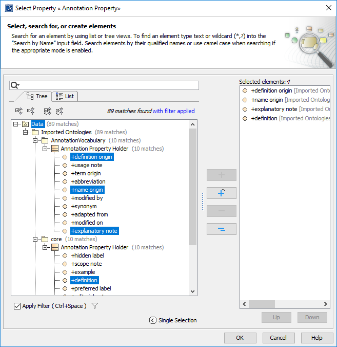 - Select one or more annotation properties (hold CTRL to multi-select properties) and click