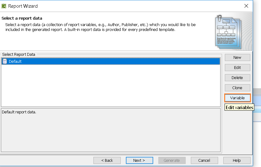 The Report Variable dialog opens. To start editing the Title, double-click on the Title field.