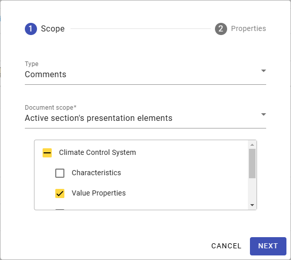 and select Export document to PDF or HTML. - In the open wizard, click the Type drop-down box and select Comments.