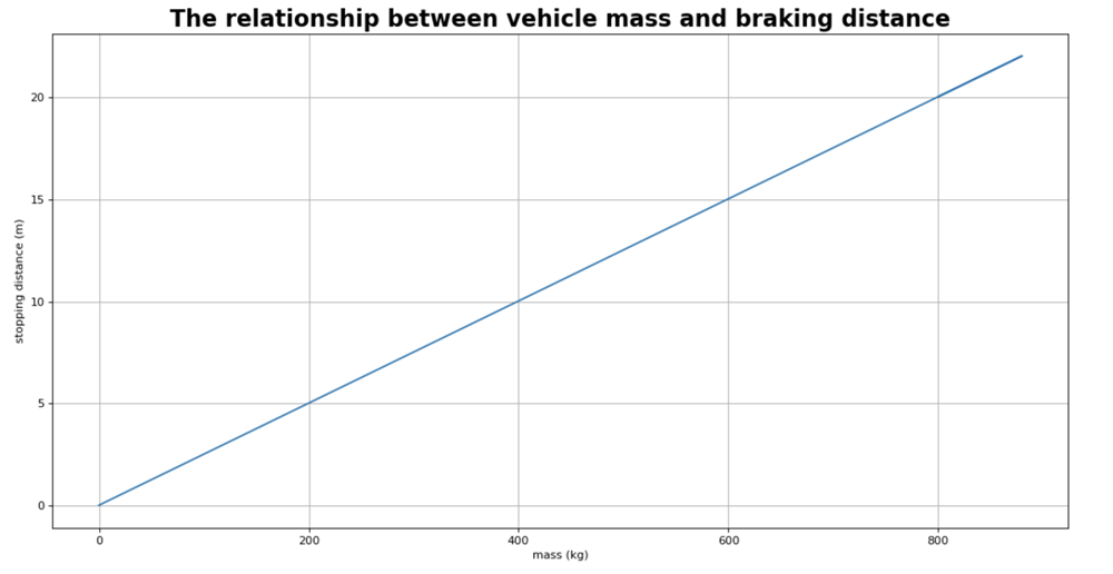The chart showing the relationship between the vehicle mass and stopping distance.
