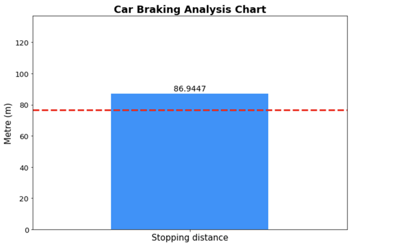 The chart showing the car stopping distance with the threshold of the required maximum stopping distance.