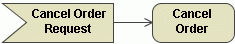 | The Cancel Order Request Accept Event Action is connected to Cancel Order with the Exception Handler relationship. |