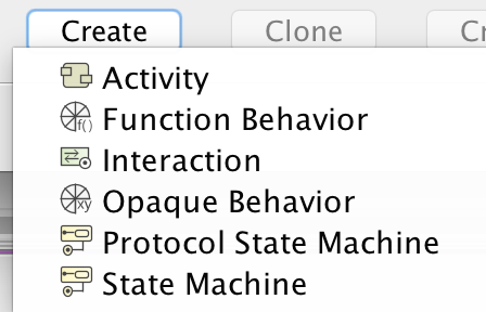 Click the Create button and then from the menu, select the behavior type.