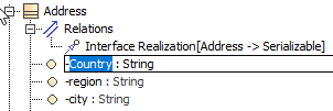 - On the diagram pane, select the class and click Create Element > Property.