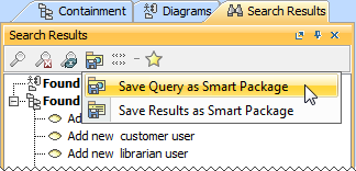 Save Query as Smart Package to create a new smart package with dynamic contents. The search options will be saved as the Query property value.