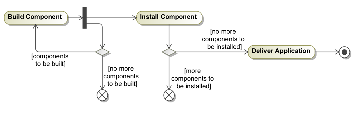 SysML v1/UAF/UML Model Element Descriptions UML elements Current: Flow Final Node Flow Final Node The Flow Final Node terminates a flow and destroys all tokens that arrive at it. It has no effect on other flows in the activity.Example of flow final node element notation Related Pages NoteFormatting symbolsSpecification windowModel ElementsEditing property valuesDecision and MergeModel MergeActivity diagram ×