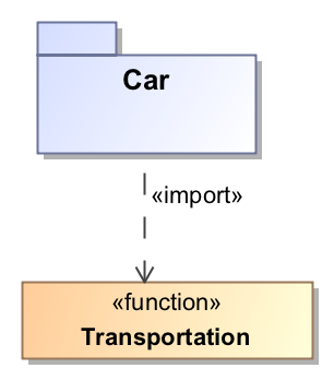SysML v1/UAF/UML Model Element Descriptions UML elements Current: Function Behavior Function Behavior The function behavior allows modeling external functions that take only inputs and produce outputs. It has no effect on the specified system.To create a function behaviorIn the Model Browser, right click any root package in your model, in the figure below the root package is Car.In the shortcut menu, select Create Element > Function Behavior .Example of a package importing a function. Related Pages Formatting symbolsSpecification windowModel ElementsSequence diagramBehaviorFunction ×