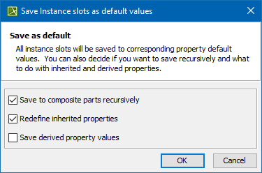 - Right-click an Instance and from the shortcut menu, select Tools > Save to Default Value(s).