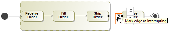 To make an edge as interrupting, simply select an edge and click the "lightning" button, as shown in the image bellow.