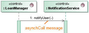 | asynchCall | Asynchronous means that the caller continues immediately after the call. asynchCall Messages do not have reply Messages. | ![]() |
