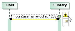 Update the argument | Before was: login (John) Now change the argument to: login (Joseph) | Exit the message label edit mode by clicking the diagram pane. | The argument is updated. |