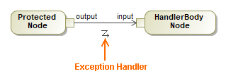 The Exception Handler may be drawn from an Output Pin to an Input Pin or from an Action to an Input Pin, as shown in the figure below.