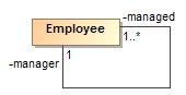 - Click a class (Employee in this example) and hover over the class until you see a rectangle shape. Click the class again to create a recursive association.