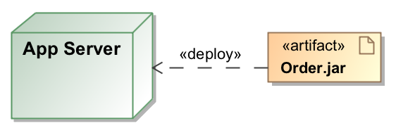 and draw a deployment link from the node to the artifact.