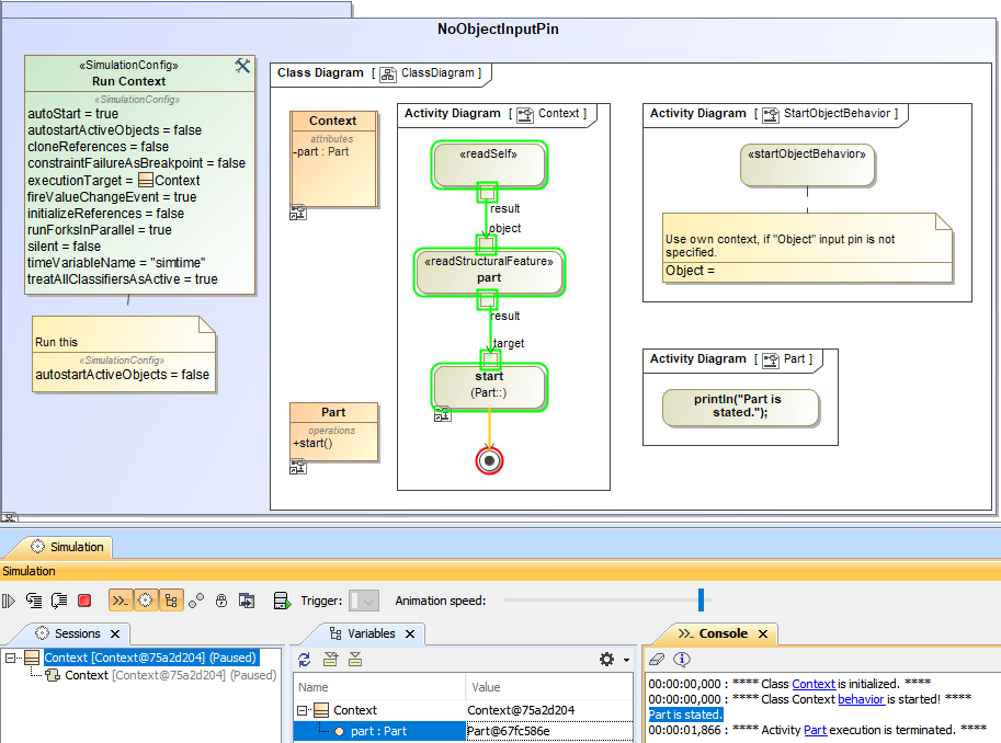 Previous versions of Magic Model Analyst / Cameo Simulation Toolkit did not support execution of incomplete or dummy models. From the 18.4 version and above, it will be possible to execute incomplete or dummy models.