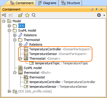 - In the Containment tree, right-click a Package wherein you want to create Domain Participants or Domain.