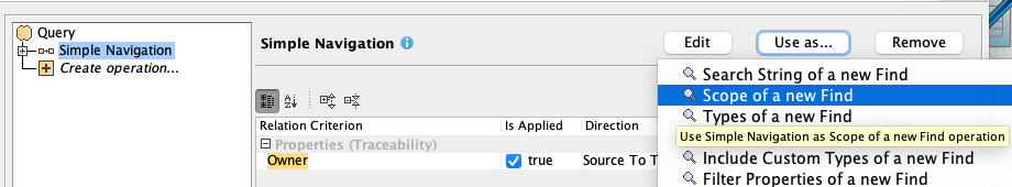 next to the Query property to edit it. Query dialog opens. - On the left side of the dialog, click Simple Navigation.