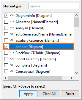 - In the Stereotype selection menu, select the «banner» stereotype check mark. Click the Apply button.