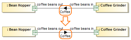 The direction of Coffee Information Flow is reversed. The illustration displays concepts from SysML v1 Plugin.