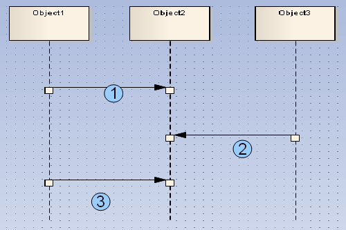 A Message in EA has a Sequence Number that indicates the order of the message in the diagram. This information can be found in the exported XMI file. Knowing it helps predict how Activations will be created. The order starts from the top and goes downward, so the first Message in the diagram is the one drawn at the top of the diagram. Its Sequence Number will be set to '1'.