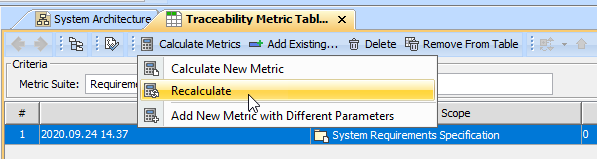 1. In the Metric Table, select the row whose metrics you need to recalculate.