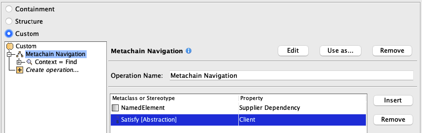 11. Under Metaclass or Stereotype, select Satisfy, and under Property, select Client