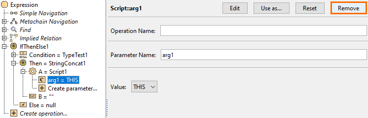 Under Metaclass or Stereotype, select Parameter, and under Property, select Type.