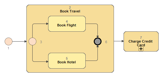 A Consecutive without Owner Number numbering schema provides non-multilevel element numbering. An Element Owner (BPMN Process, BPMN Collaboration, or Choreography) number is not included in the element number.