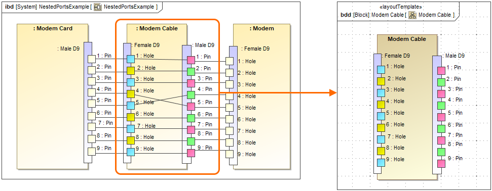 Creating a layout template from the SysML Internal Block Diagram (Composite Structure Diagram in a UML project).