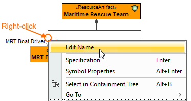You can edit the default name on the diagram, in the Containment tree, or in the role's (2026x) Specification window.
