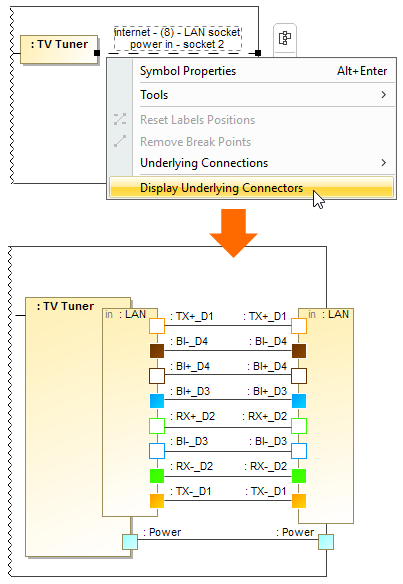 - Using the Display Underlying Connectors command to show all actual ports and Connectors at once. How to use Display Underlying Connectors command >>