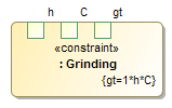 If you display properties of a Constraint Parameter, all properties of its type will be displayed inside the Constraint Parameter shape and Part Property compartments will be enabled for that parameter.