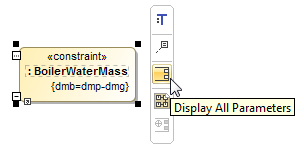 If the Display All Parameters button is not available, the selected element or diagram does not own any Constraint Parameters.