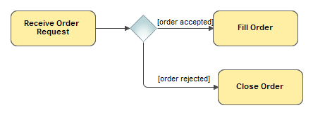 A diverging Exclusive Gateway (Decision) is used to create alternative paths within a process flow. This is basically the diversion point in the road for a process. Only one alternative path can be taken for a given instance of the process.