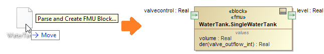 An existing FMU Block can be updated by dragging and dropping a FMU file directly on it. This is useful in those cases when there is a need to quickly import properties that were initially left out.