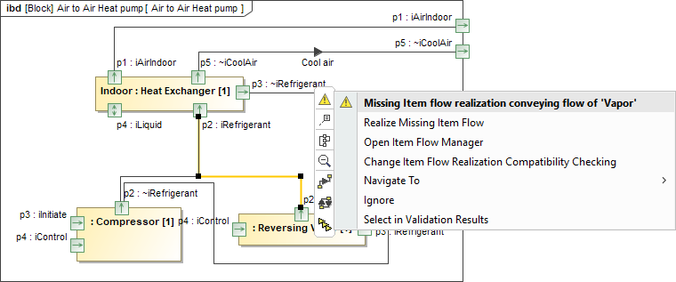 - Realize Missing Item Flow - realizes the compatible existing Item Flow on the Connector that was found in the behavior model.