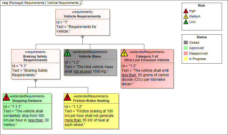 A Legend is a model element that allows you to define the styles of diagram symbols and table rows. It helps you to visually group model elements according to specified criteria. Use Legends to increase the readability of the diagram and table contents by highlighting important information, e.g., specific element property values or statuses. In addition, the styles applied to model elements are dynamically updated when you modify your model, so all changes are instantly visible in diagrams and tables where Legends are used.
