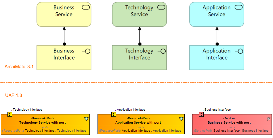 - If ArchiMate Technology/Application Interface is related to Technology/Application Service using the Assignment relation, then after the import the UAF Resource Artifact with Resource Port which type is Resource Interface is created.