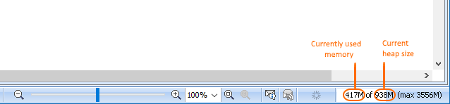 When used memory takes more than 85% of the total heap size, the Memory Monitor bar turns red, indicating that a modeling tool may run out of memory soon.