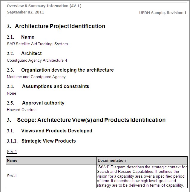 The overview and summary information contained within the AV-1 product provides an executive-level summary information in a consistent form that allows for quick reference and comparison between architectural descriptions. AV-1 includes assumptions, constraints, and limitations that may affect high-level decisions relating to an architecture. In an enterprise repository environment, individual architectures are mapped against enterprise phases to provide context between the architectures. AV-1 is usually a structured text product. Organizations may create a template for the AV-1 that can then be used to create a consistent set of information across different architecture-based projects.