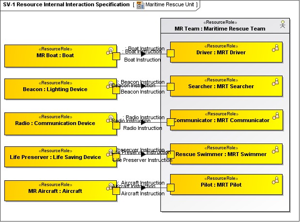 The Resource Internal Interaction Specification (SV-1) addresses resources' internal composition and interaction.