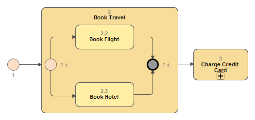 A Multilevel without Owner Number numbering schema provides multilevel element numbering. An Element owner (BPMN Process, BPMN Collaboration, or Choreography) number is not included in the element number.