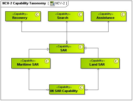 The NCV-2 Product models capability taxonomies. The view presents a hierarchy of capabilities. These capabilities may be presented in context of an Enterprise Phase, for example, it can show the required capabilities for current and future enterprises.