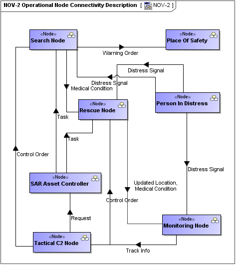 The Operational Node Connectivity Description is intended to track the need to exchange information from specific operational nodes (that play a key role in the architecture) to others. An NOV-2 does not depict the connectivity between the nodes. NAF modifies the NOV-2 in two ways. First it recommends that an NOV-2 diagram shows the platforms or geographic locations at which operational nodes are deployed. Secondly it provides additional information about each needline in the form of a requirements specification. There are now four types of needlines identified as follows: